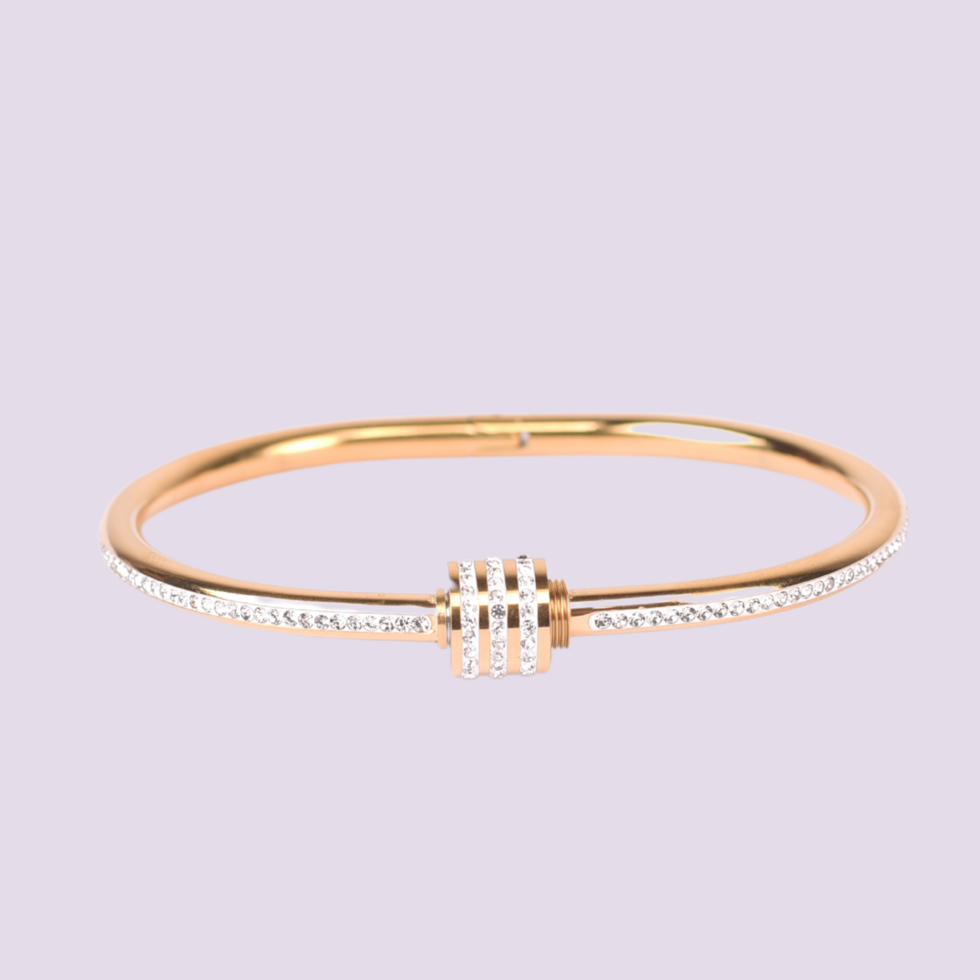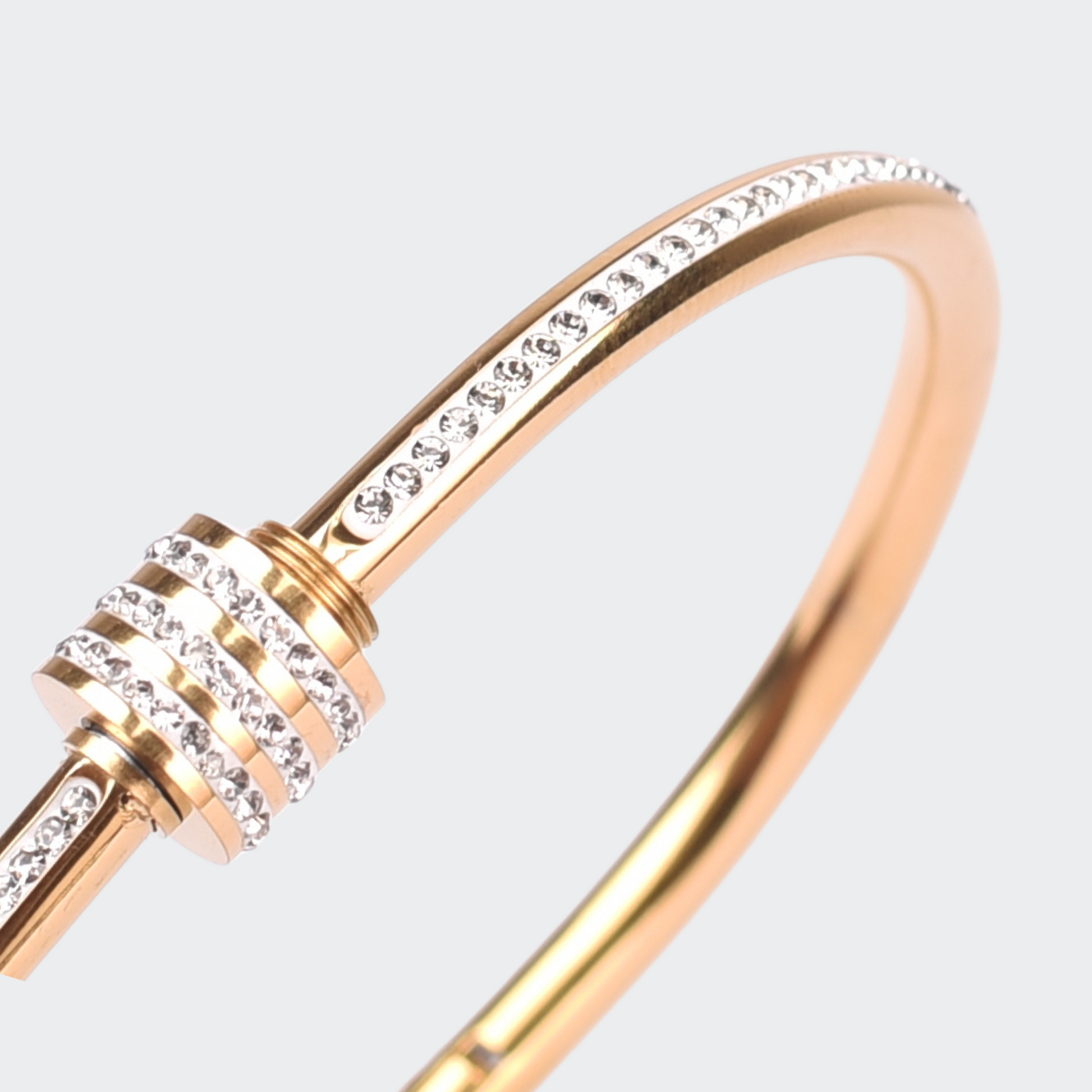 The Interlink Luxe Bangle speaks of strength and contemporary style, yet refined. The high-polish gold finish and oversized chain-link feel elevate the sophistication level, as the silhouette provides a modern framework. Each link is perfectly interlocking, expertly designed to move freely and flow, this bangle will serve the purpose of being an accent piece on its own or stacking among a variety of wristwear